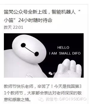 昨晚22:01分 笛梵公众号全新上线,同时带来智能机器人小笛火遍朋友圈。都说了禁止调戏的呢,你们非不听,看把小笛玩坏了都。