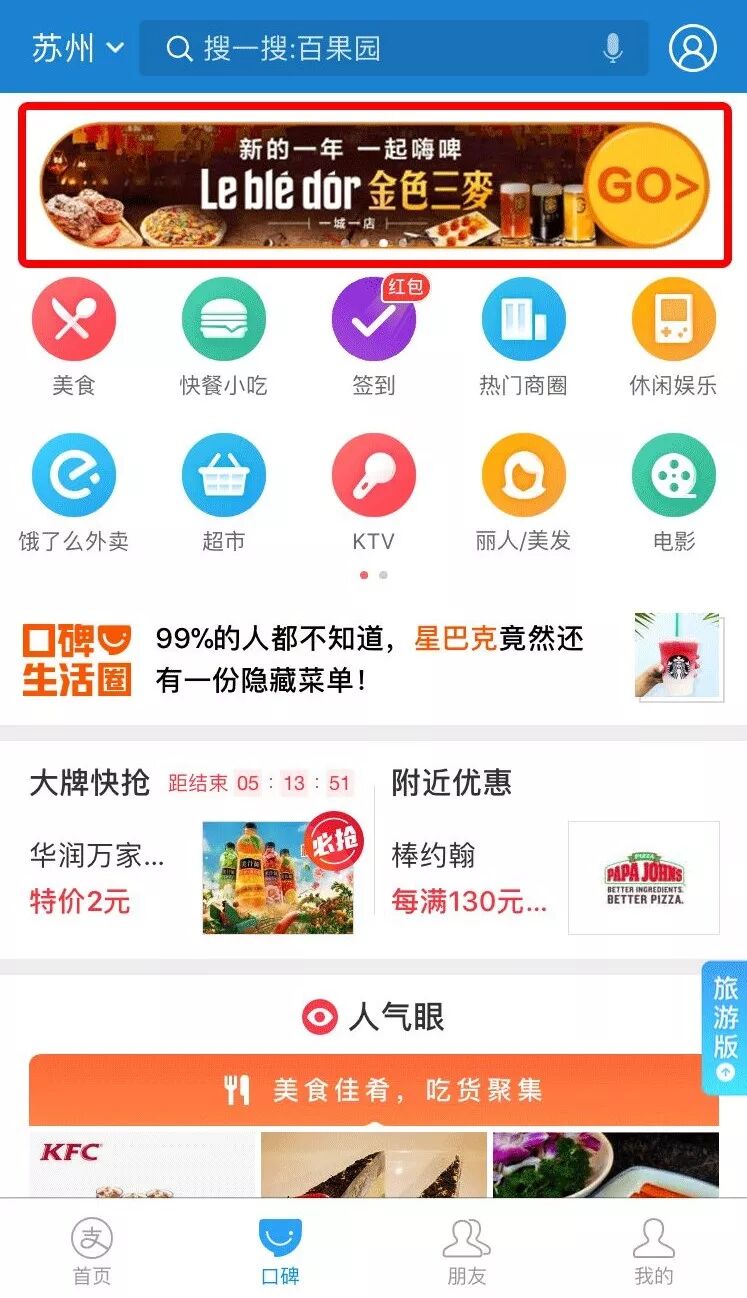 打开支付宝app,点击支付宝-口碑banner顶部图