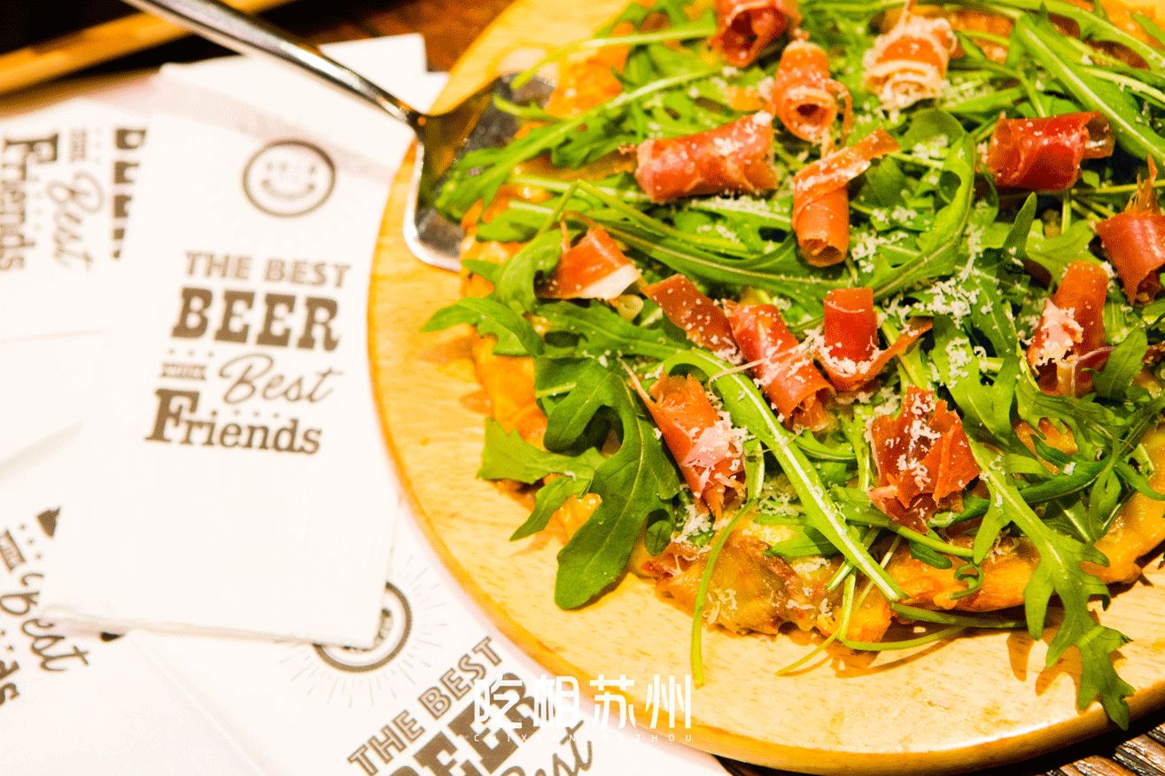 生火腿芝麻叶披萨: 创意+口感100分。昂贵的比利时生火腿搭配绿油油的芝麻叶,从造型和创意上就先胜一筹。将披萨卷起来仔细品味,三种滋味有层次的在口腔展开,生火腿的风干香、芝麻叶的咸脆、起司粉的酥,风味不能再独特啦。