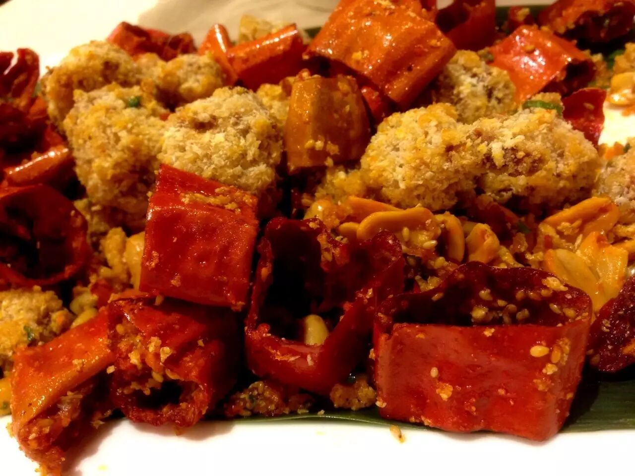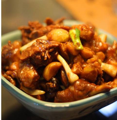 带壳栗子 / 鸡肉 / 干辣椒 / 蒜泥 / 生姜
