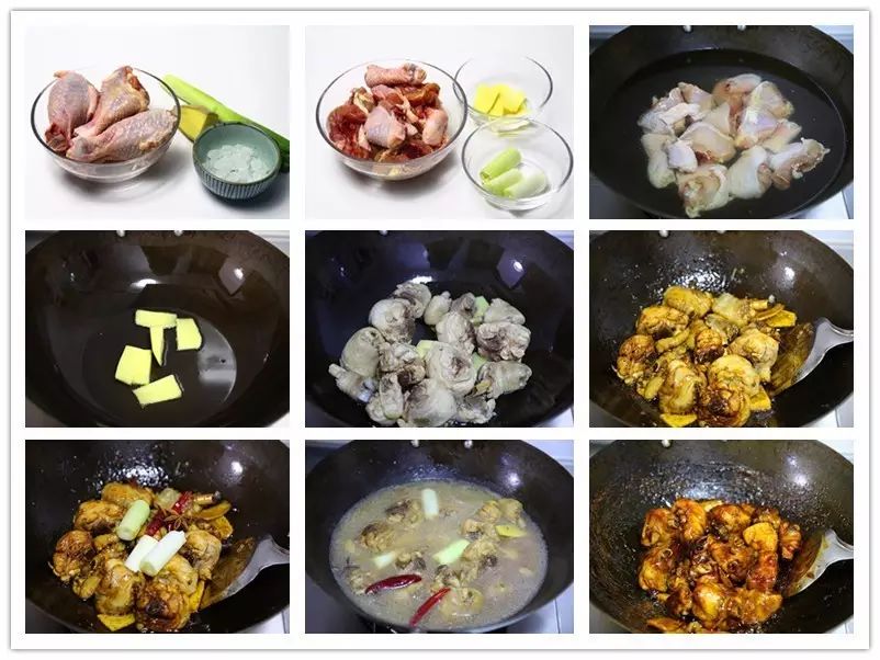 3.放姜,蒜 爆 香,放鸡块煸炒,大火炒5,6分钟,使鸡块的水分基本炒干