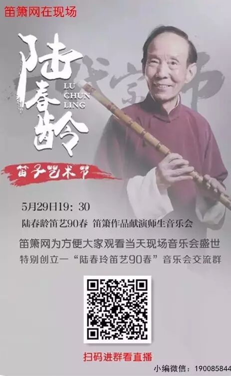 可以想象,陆春龄的音乐会肯定不缺观众,以至于不是大家都会有机会去现场观看陆老的精彩演出,笛箫网为了让那么多在手机哪端的你也可以第一时间看到现场的演出气氛,活动过程,特别推出一个互动交流看直播的群聊,大家可以扫码进去,期待陆春龄自登台演奏的那一刻