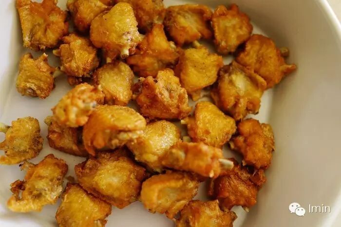 放入鸡翅这样沸腾起来就是油温够了,一放进去这样沸腾了就转中小火慢炸。大火表皮容易焦糊,内里还没熟,只有中小火慢炸才会外酥里嫩。