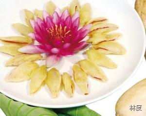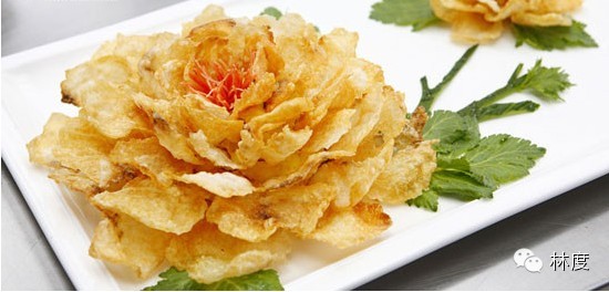 在诸款菊肴中,深受人们喜爱的莫过于“菊花炸鲮球”,就是将鲮鱼肉做成球状用花生油炸了拌着鲜菊花吃。在日本,油炸菊是一道名菜,它选用菊花、桔梗、木槿等花。在花的背面裹上薄薄的蛋衣,人锅油炸就成了松脆可口的美餐。