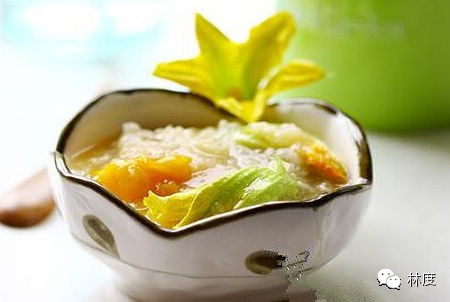南瓜花在乡土菜中十分常见,花朵硕大,漂洗切碎后,拌在面粉之中,煎成饼食用,或者煮粥。有些人可能觉得南瓜花素炒不够好吃,上加一点皮蛋、杞子、高汤,煮开做成汤就会鲜得多了。