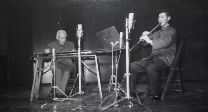 ▲早期“戴树红”先生与古琴家“张子谦”先生录制琴箫合奏《平沙落雁》