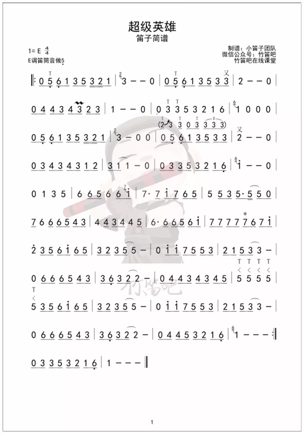 添加小笛子微信号【zhudiba666】,备注:超级英雄伴奏。