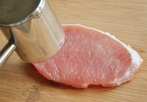 Step1: 猪扒用刀背轻拍,帮助肉质变得松软,但不要拍得太薄像肉片一样。