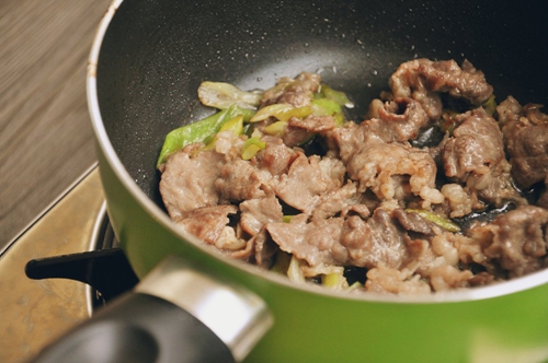 Step4: 沸腾后加入先前准备好的葱爆肥牛和剩下的大葱,再次沸腾后即可开动!(如果用的是清水,这一步要适当加入盐调味。)