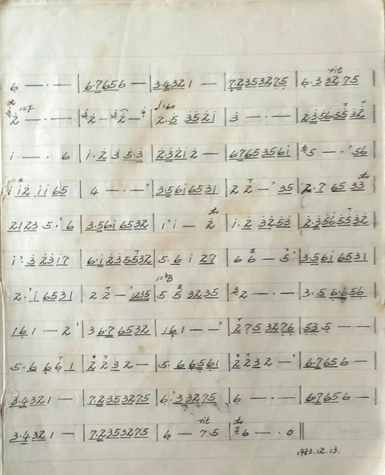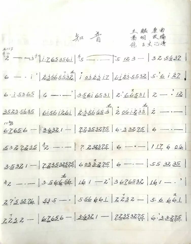 此曲原为电影《知音》的插曲,王酩作曲,由西北箫王的高明改编成洞箫独奏曲。高明先生原先用洞箫D调(筒音作do)转G调(筒音作sol)演奏,本人改换F调(筒音作la)转bB调(筒音作mi)演奏。演奏的难度增大了一点,但乐曲的情趣却与原先有所不同。