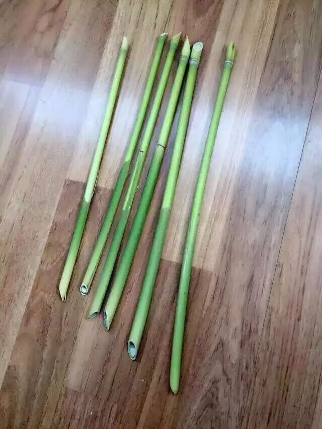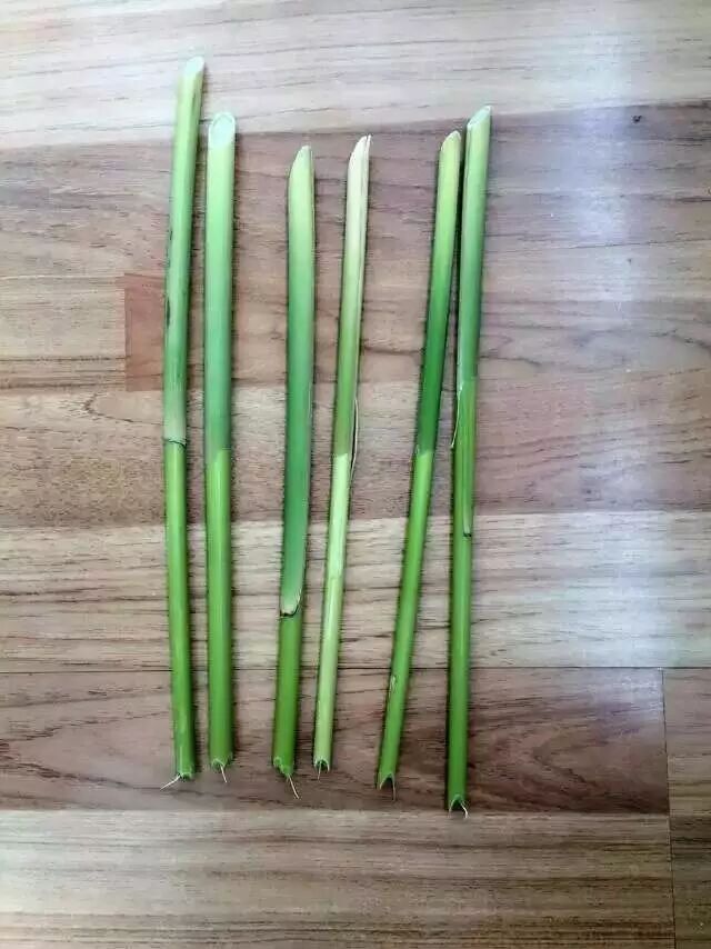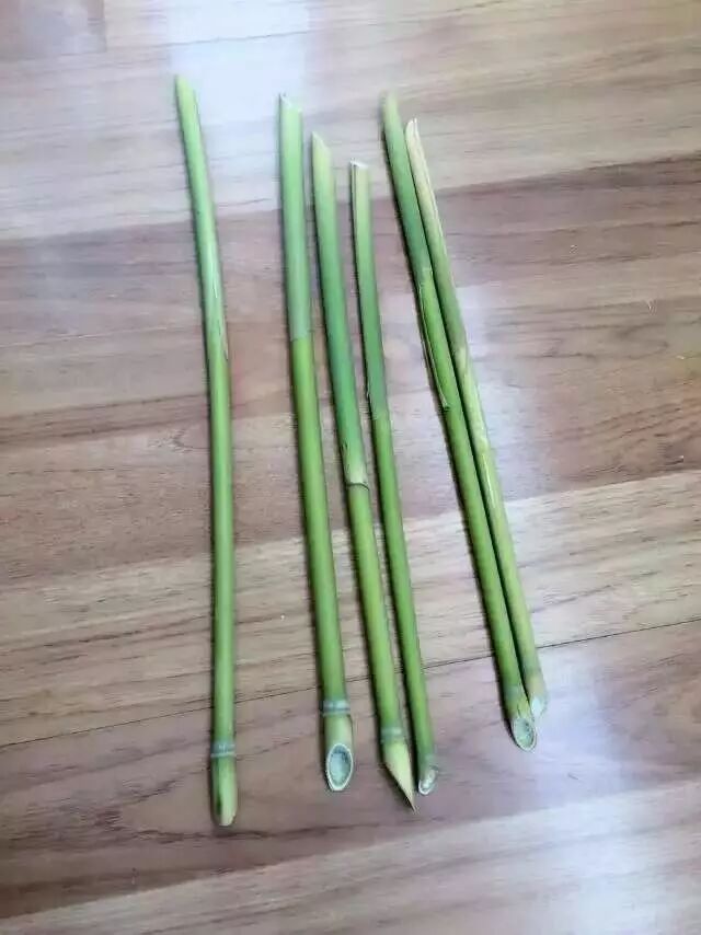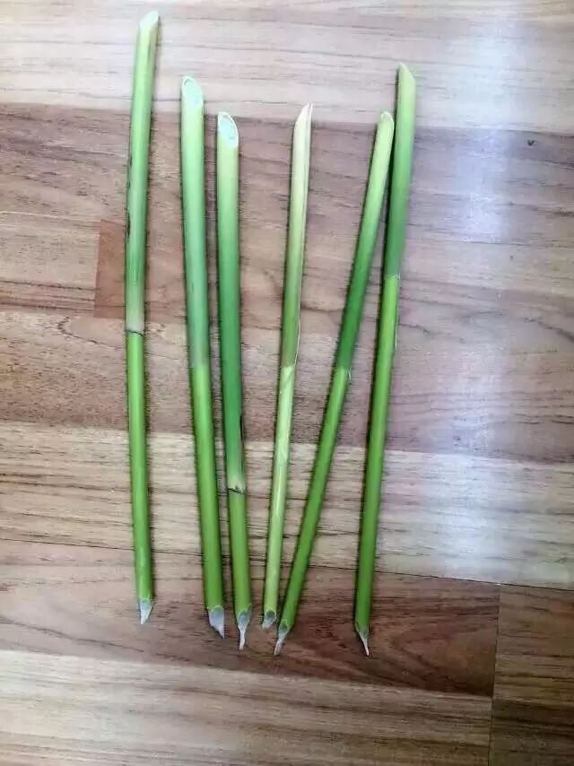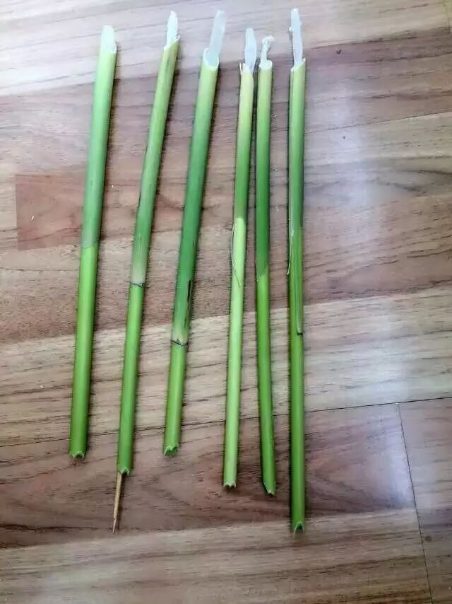 第二步:用美工刀切削芦苇一端成为空心管状,再切削芦苇的另一端。