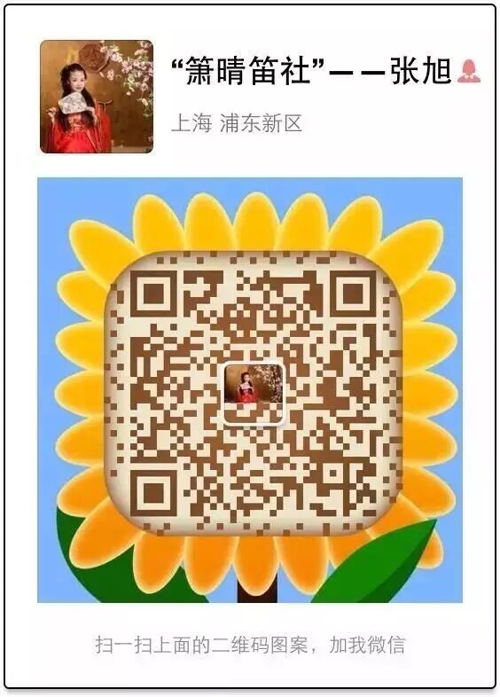 您可以添加张旭老师的个人微信或加入“箫晴笛社”QQ群或做进一步的交流。张旭老师个人微信号:zhangxu890201,箫晴笛社QQ群:103644920。