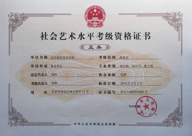 如今,钢琴培训考级早已不是新鲜事,而电吉他、电贝司、架子鼓这些现代乐器虽然早已在各种音乐创作和表演中广泛应用、为人熟知,却一直缺少一个系统地教学培训与考级认证的标准。2014年3月,北京迷笛音乐学校获得了中华人民共和国文化部监制、北京市颁发的《社会艺术水平考级资格证书》,成为中国唯一的全国性现代音乐考级认证机构,填补了中国现代音乐乐器培训与考级的认证空白,中国现代音乐培训与认证将由此进入了“标准化”时代,未来现代乐器考级会像古典乐器考级一样为大家广泛接受和选择。