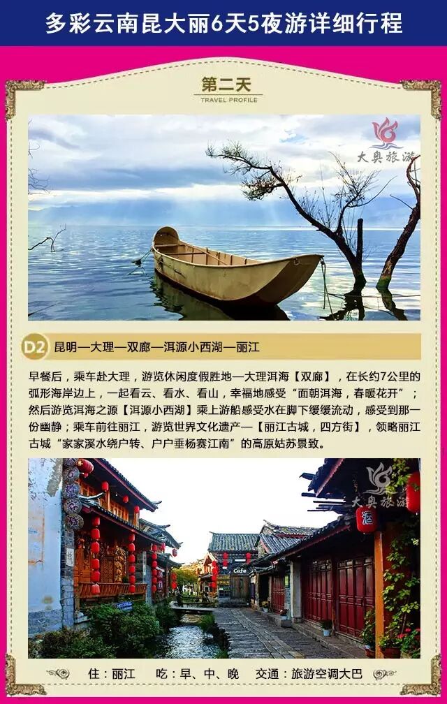 2.餐饮:全程用餐5早7正(早餐酒店含早,正餐20元/人),其中游玉龙雪山,中餐是营养餐包;