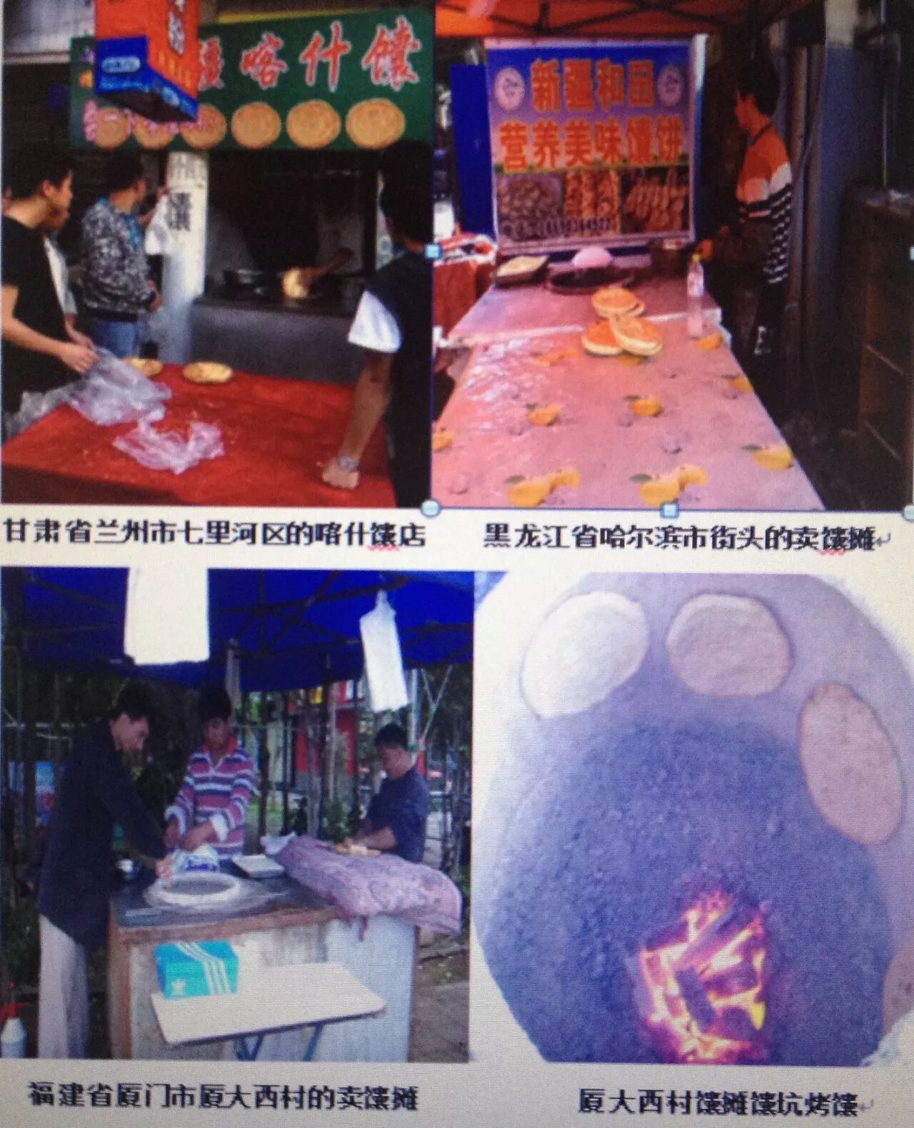 迅速将眼前的红枣一扫而空,我开始盯上稍远处的烤馕,小心翼翼地将一小块撕扯下来放进嘴里。这是我第一次吃新疆的馕,原以为它会和白馒头一样索然无味,但它在口中融化时,一股浓郁的香充击着味蕾,淡淡的咸配上芝麻的香,再加上一口咸奶茶伴着奶香将干噎感消去。视觉上的简单与口中的美味形成强烈对比,我忍不住再掰了一块。台上的老师也举起一块烤馕,娓娓讲起了新疆人与馕的故事。馕因新疆独特的地理、经济、宗教原因而进入了维吾尔族人们的食谱中并占据了重要的地位,“馕就是命,无馕遭殃”,千百年来,小小的馕逐渐成为了维吾尔族文化象征的符号,也成为了维吾尔族人们美好愿望的载体,人们将馕视为美好富足、幸福团圆的象征,在外的游子也“见馕如见故乡”,吃着故乡的馕饼、日夜为故乡担忧。不论身处何方,只要吃上一口馕,就仿佛回到了故乡。人们珍惜馕犹如珍惜生命,人们尊崇馕犹如信奉神灵,人们渴望拥有馕犹如渴望拥有美好、富足、幸福的生活 。馕不仅是维吾尔族的传统食物,也是新疆各个民族都喜欢的食物,通过馕的共食与分享,从一个侧面体现出新疆各个民族相互依存、共居共生社会文化现象。随着我国市场经济的不断发展,馕的身份也摇身一变,从食物变成了商品,馕走出维吾尔族家庭餐桌,走向了广阔的市场,打馕卖馕也成了维吾尔族群众脱贫致富和提高生活水平的经济手段和生计方式,如今在祖国的大江南北、大城小镇,从冰城哈尔滨到羊城广州,从金城兰州到沪城上海,都能看到维吾尔族同胞打馕卖馕的身影,就在祖国东南沿海的厦门,打馕卖馕的餐厅小摊也有好几家,馕已经突破了民族文化的边界,成为祖国各民族喜欢的食物。馕的流动伴随着文化的流动,伴随着各民族的相互欣赏和理解,馕在祖国不同地区的经营与消费,从另一个侧面表达了祖国各个民族的相互认同与相互欣赏。听完馕的故事,那些口中仍残留着的尚未淡去的烤馕的味道,此时仿佛也多了一些特别的感情在里头。