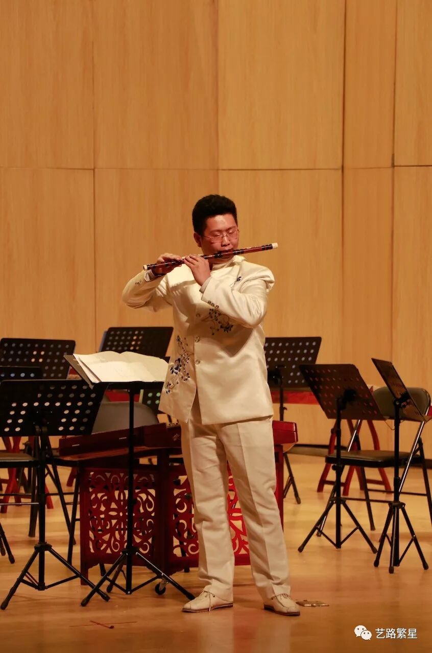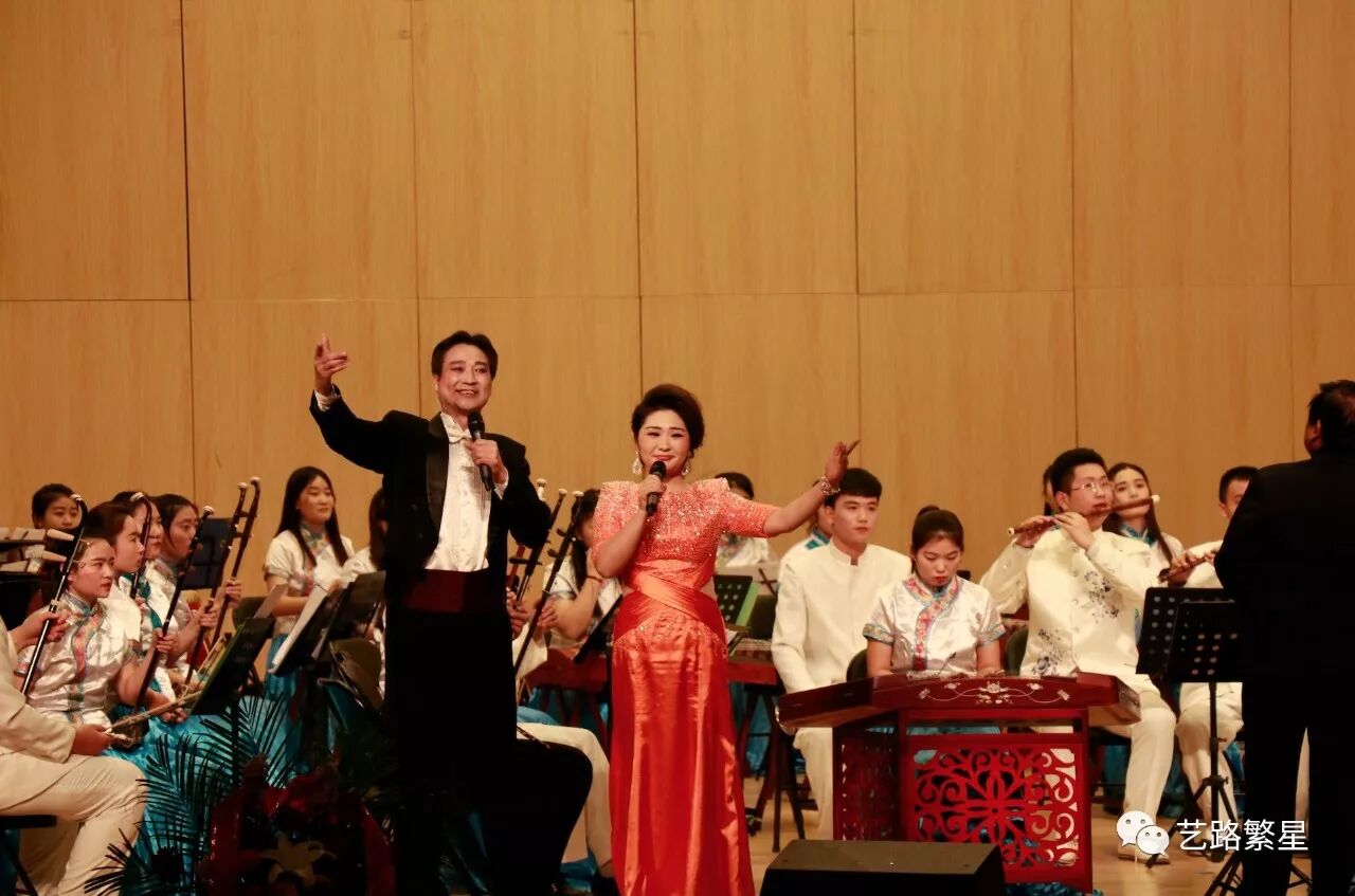 接下来,龙吟国乐团为大家带来了广东音乐《步步高》、四川民歌《康定情歌》和《泉水叮咚》三首好听的乐曲。并邀请到艺术学院副院长李海安助唱。