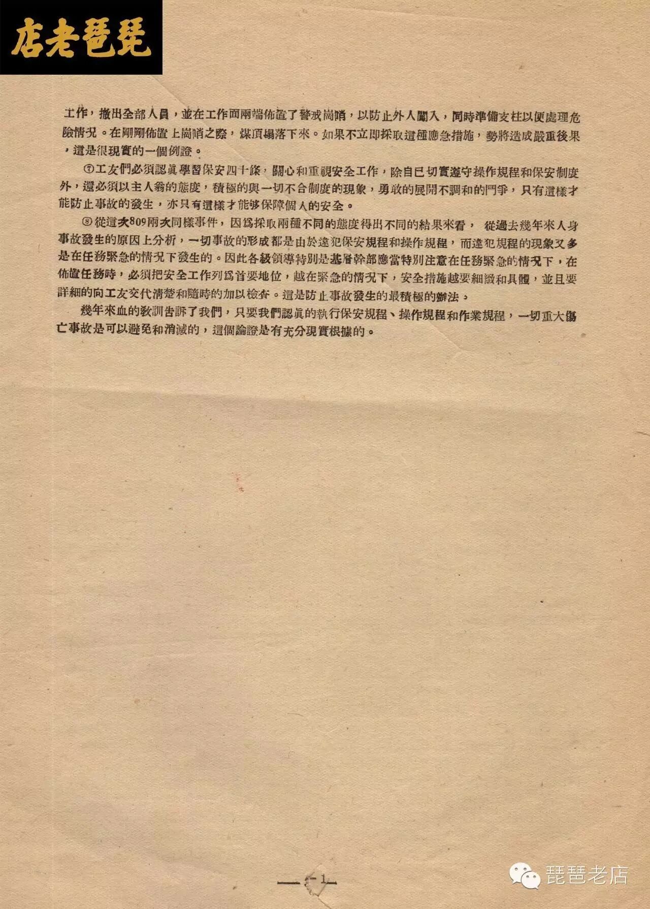 四矿809工作面的情况是严重的,类似四矿809的情况,各矿在不同程度上都存在的,所以各矿应该认认真真的组织全体职工,根据四矿809的情况结合本单位、本班、本组的具体情况,展开讨论,并动员大家大胆的揭发与批评不重视安全和违犯保安作业规程的任何一个人,以资吸取教训,提高警惕。只有这种实际行动,我们阶级弟兄的血才算没有白流。除有关责任者给以应得处分另行研究外,为了迅速使广大职工接受教训,特先行通报。