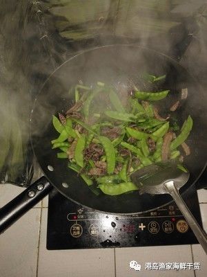 6、最后加入荷兰豆一起翻炒(有黑胡椒粉的话,可加点就太完美了)