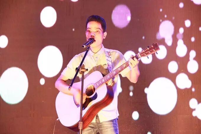 (图为表演节目-- 吉他弹唱《不再犹豫》 )