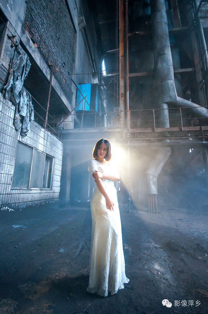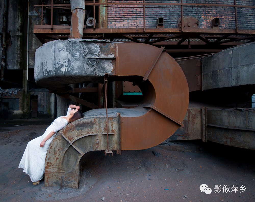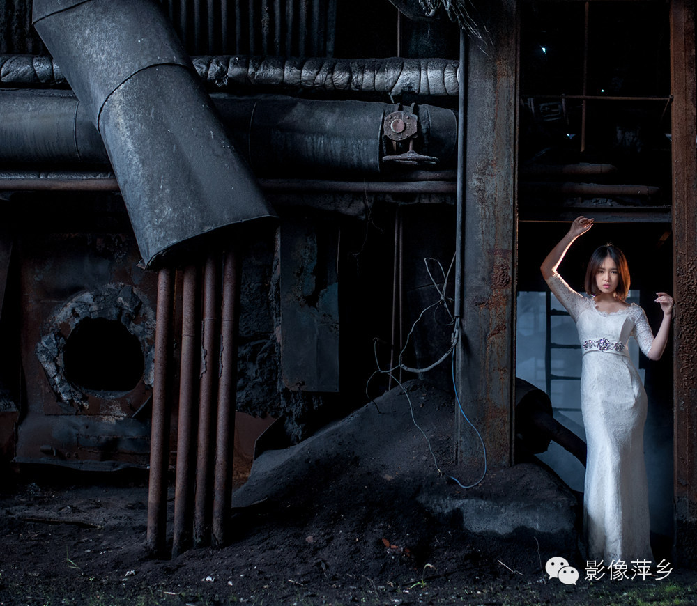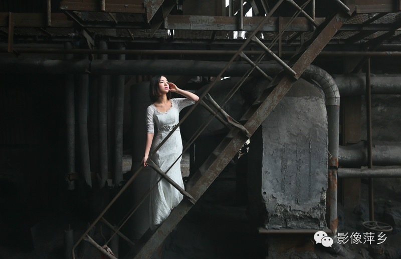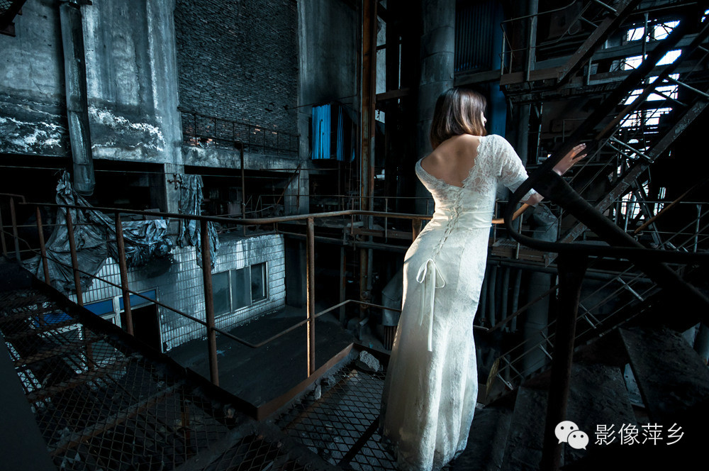 在废旧工厂内拍摄,由于现场环境比较脏乱,随处可见锈斑煤灰。洁白的婚纱没走几步路就变得发灰。为了动作的到位和配合光影,很多幕镜头都需要熊玉婷与煤灰锈斑直接接触,她自始至终没有说过一个不行,非常配合摄影师完成一系列的拍摄。这样的敬业精神的确让人心有所感。