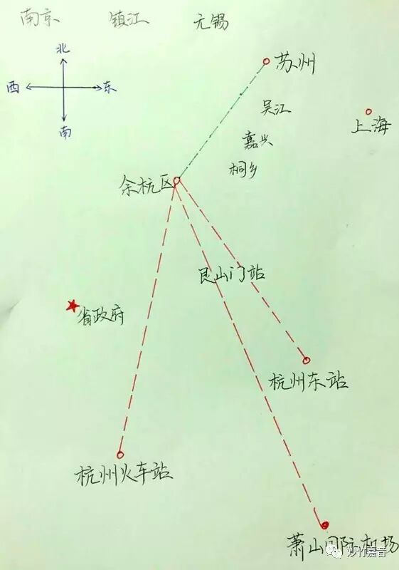 书归正传,在铜岭桥学习考察了三天整,就在准备回北京的那天早晨,突然下起雨来了!那天早晨,也有一些其他的去铜岭桥的老师和笛友要回杭州,我可以等等他们,向他们求助,搭个便车一起走,也可以到长途汽车站,先坐上大巴车,然后换公交车到杭州高铁站或杭州南站,还可以打个出租车去杭州萧山机场。而我所突发奇想的是:江苏省就在浙江省的北面,余杭区也在杭州市区的北面,天在下雨、交通肯定堵死,往南向杭州市区赶路,三个小时能够吗?