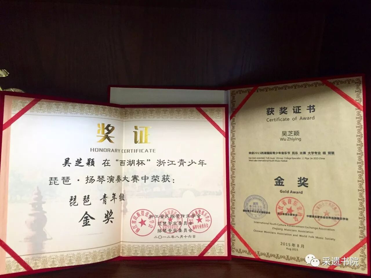 2015“西湖国际青少年音乐节”民乐比赛大学专业组琵琶组金奖。