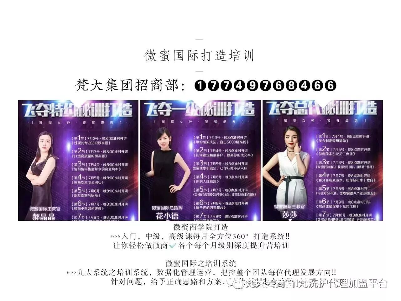 想做微商的伙伴可以联系我!找好上家很重要,咱们不是简单的供货卖货关系,我会教你怎样销售、调整心态、管理团队,定期开展微信营销初级、中级、高级课,护肤课,帮助你迅速成长!