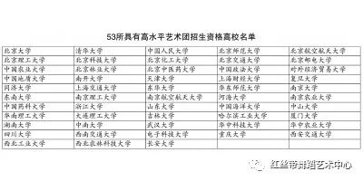 以下是53所具有高水平艺术团团员招生资格的重点高校