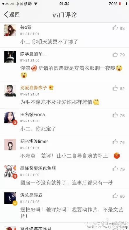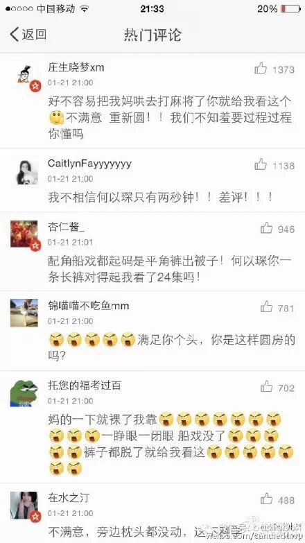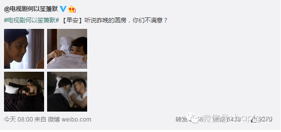 据说很多观众看了预告片,说昨晚将会播出何以夫妇圆房的片段!各位粉丝好像打了鸡血一样,吃饭拉屎都顾不上了,等着看片。