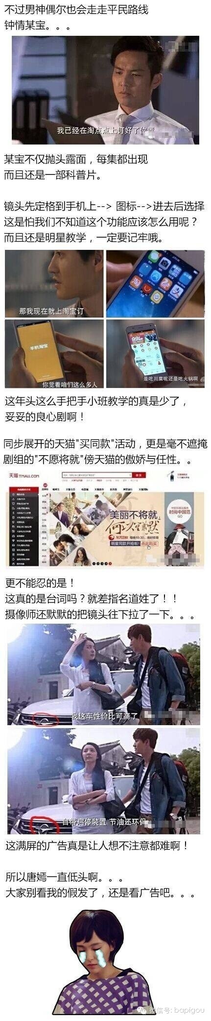其实这么红火,无非是为了挣钱,╮(╯▽╰)╭你们知不知道这部片广告植入有多少啊!!!超级多,好不好↓