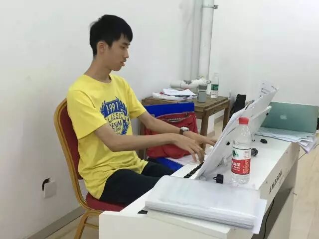 钱敞可谓钢琴社弹动漫改编钢琴作品的代表(我认为去琴房听到的动漫曲子十有八九都是他在弹),他在考试周期间还坚持一边看书复习一边为我们担负起钢伴的角色。随着期末考完试大家的回归,我们由于缺少旋律声部又请来了新的手风琴田菁曳,她认真地在谱子上做了各种标注(比如我的改编中分谱缺乏设计时常让人找不着位置),最后几日的排练是最为有趣。刘童童极为耐心地为我们负责摄影工作,让我们有了最初推送的素材。而靠谱低调的苏大林临危受命被我们邀请来改编曲子,组织排练,用全面的钢琴技术担当了不少钢伴。