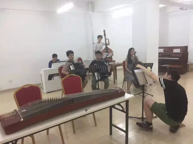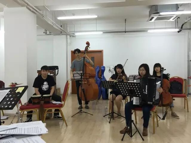 由于是第一次做这样主题的音乐会,我和提琴社等等社团的小伙伴也不很熟,加之离期末时间也比较近,我们招人的过程是十分艰难的,颇有点“师出无名”的感觉。我们几乎发动了认识的所有小伙伴,尝试了一切可能的方法。有通过社团发通知转发推送,赵社把合作过的小伙伴问了个遍,甚至中间还请来中央音乐学院的小伙伴和中南大学交响乐团的师兄们来一起玩,赵社后来也把手风琴社的骨干介绍来。然而各个声部都很难凑到人,排练时小提琴也最多只有一位。期末季一到,大家都各自去考试,常规的排练也就难以进行了。