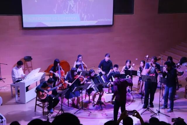 民乐团的大神们自己打印谱子,并且一定提前练习听demo,从来不出错误,都给人留下极其深刻的印象,善老师carry了新曲子的大提,让我们的曲目丰富不少,他们和小敏、章葳刘VP一起,将王者荣耀演得别致而出人意料地好,将詹姆斯邦德、碟中谍、权力的游戏都迅速排了出来。