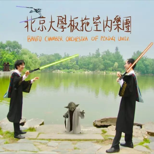 为了让更多的人了解这场音乐会,最好的方式当属对排练视频录像进行推送。我们紧锣密鼓地用几天晚上当场录排练视频当场上传当晚推送,从《Ludlows》到《名侦探柯南》、《Butter-fly》,发现还是颇有人气,甚至北外古典音乐协会还帮助转发了我们的柯南主题曲推送。上传的时候需要写简介,不知道叫什么好,干脆写成“未命名(XX)室内乐团”。后来大家一致认为赵社的板拖十分抢镜,开奇师兄把群名改为“北京大学板拖室内乐团”,于是这个神奇的组织有了一个神奇(接地气)的名字。后来板拖团的毕业生成员们又参加了信科的毕业生晚会,并且在大师和Dr.Tian的带领下参加了2017年北京大学毕业生晚会的演出,并录制了北大版《成都》。
