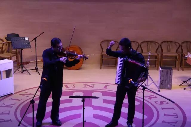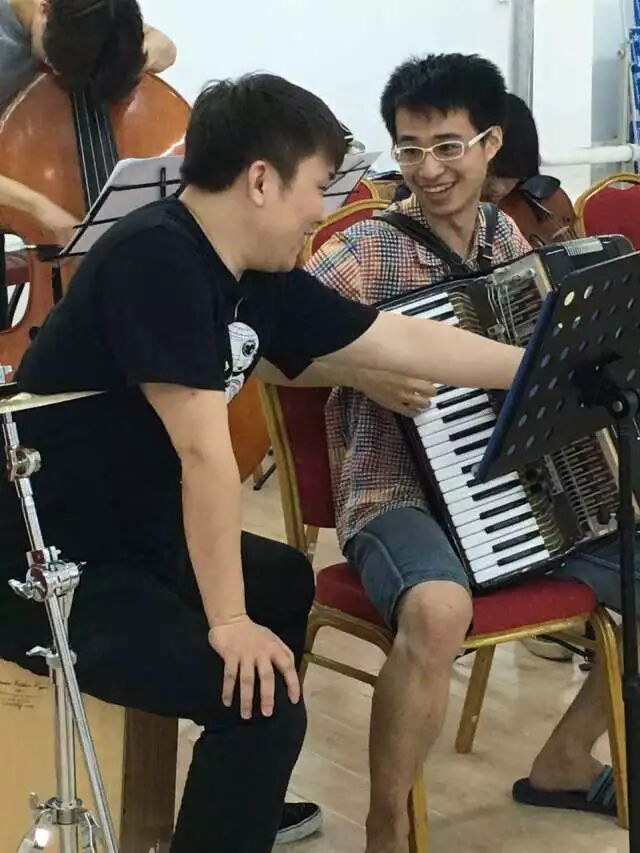 当时招募原声音乐会乐手,王涵从钢琴社群里亲自找来,为我们承担了大量的工作,为人的nice,机智和幽默给大家留下了很深刻的印象。小提琴手陈大神在一堆讨论事务安排的中间坚持来排练,前后赶若干个场,这些默默的付出都令人感动。她作为小提技术过硬,实力承担了全场的小提声部,从一开始就令人佩服。章葳和刘芯蕊一直以来关系就很好,在百忙之中甚至带病也背着琴前来参加排练,是我们能坚持的重要动力。(某次晚上只有我、赵社和带病赶来的章学姐能够赶来排练,我们就一起在新太阳地下演奏男儿当自强,路过的人们都处于好奇的观望状态。) 赵社作为手风琴社长,能力高超,合作广泛,东北爷们儿,说话直爽办事果断,是音乐会和手风琴社的中流砥柱。跟旭旭也是不需要解释的老关系,一起玩过2015年新年晚会的卡萨布兰卡,一起商讨Butter-fly的吉他部分,一起改编燕园情的吉他solo。