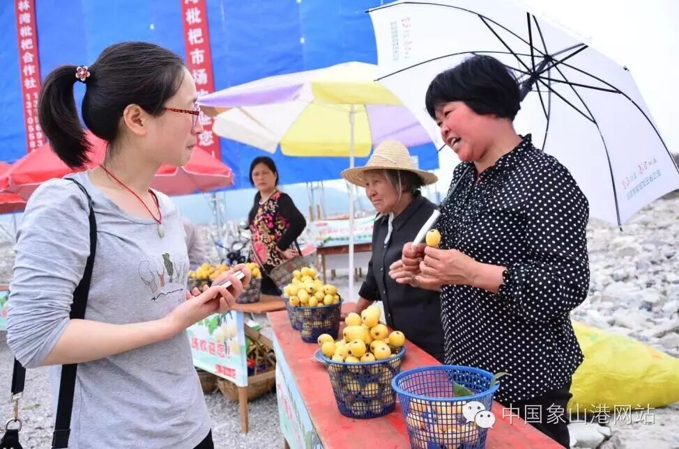 从沿海南线到象山影视城经过的七林湾和高湾,很多路边支起了临时摊贩,果大爽口、金黄多汁的新鲜枇杷吸引了不少过往游客驻车品尝、挑选购买。