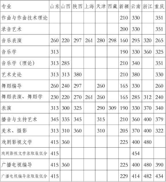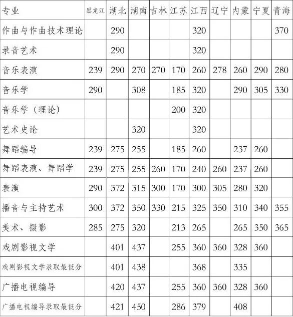 1、音乐学专业(含音乐教育、音乐学理论、艺术管理、钢琴调律招考方向)320分;