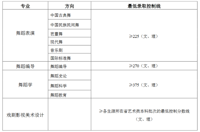 北京舞蹈学院2017招生各专业录取最低控制分数线
