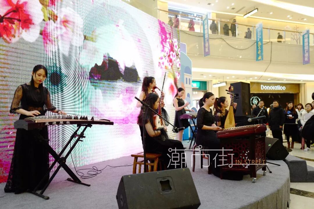 这是来自南关厢的采遗乐坊,六位美女带来了古筝、琵琶、扬琴、二胡、中阮的民乐表演。