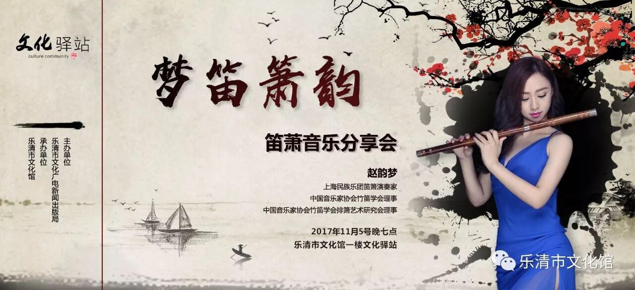 上海民族乐团笛箫演奏家赵韵梦将与大家相约在文化馆一楼文化驿站,
