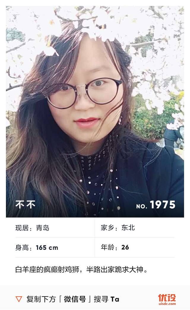 1、后台回复【姓名、现居、家乡、身高、年龄、微信号、个人简介、照片】。(注:头像照片要保证宽度不小于600px,个人简介字数不超过50个字)