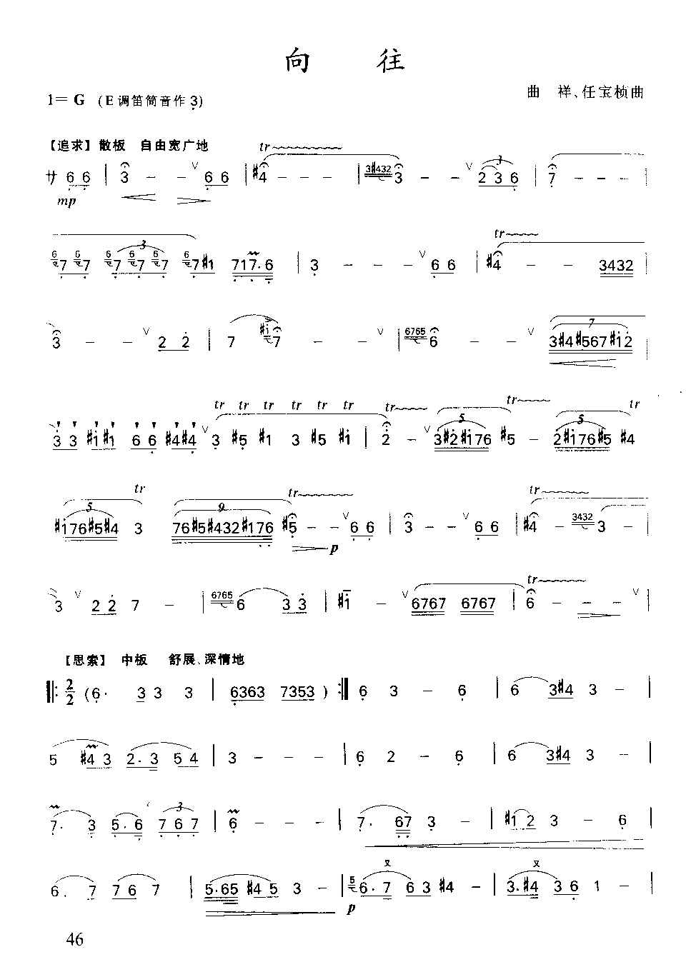 由曲祥、任宝桢创作的笛子曲《向往》,从生活和艺术的角度,深刻地表现了人们不懈地追求理想,以及对未来充满了美好的向往。
