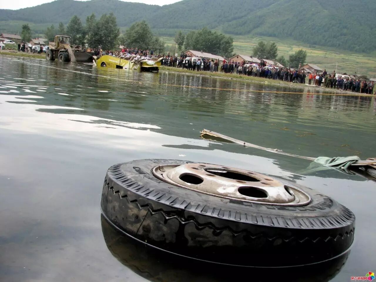 作品:回不去的车轮 内容:2006年9月11日,一辆搭载着20名台湾游客的中巴在黑龙江省进入吉林省汪清县山腰间的公路上行驶。突然,车辆尾部放横,刮撞在路边的警示桩后,冲出路面向山下的河中坠落!