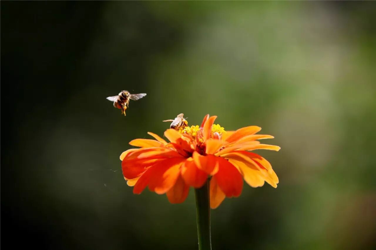 作品:蜂花恋 内容:2014年7月30日,作者在延吉一居民小区等待采访时,在小区花坛边拍到此图。