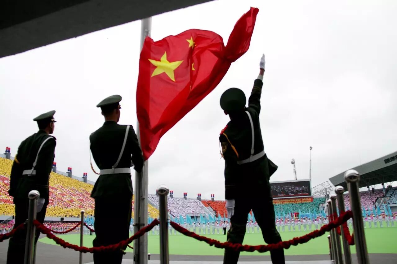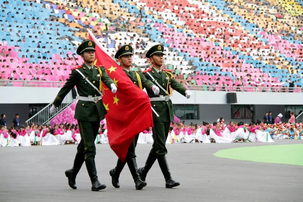 作品:升国旗 内容:2012年9月3日,吉林省延边朝鲜族自治州举行隆重的建州60周年大庆,这是州庆活动上升国旗。
