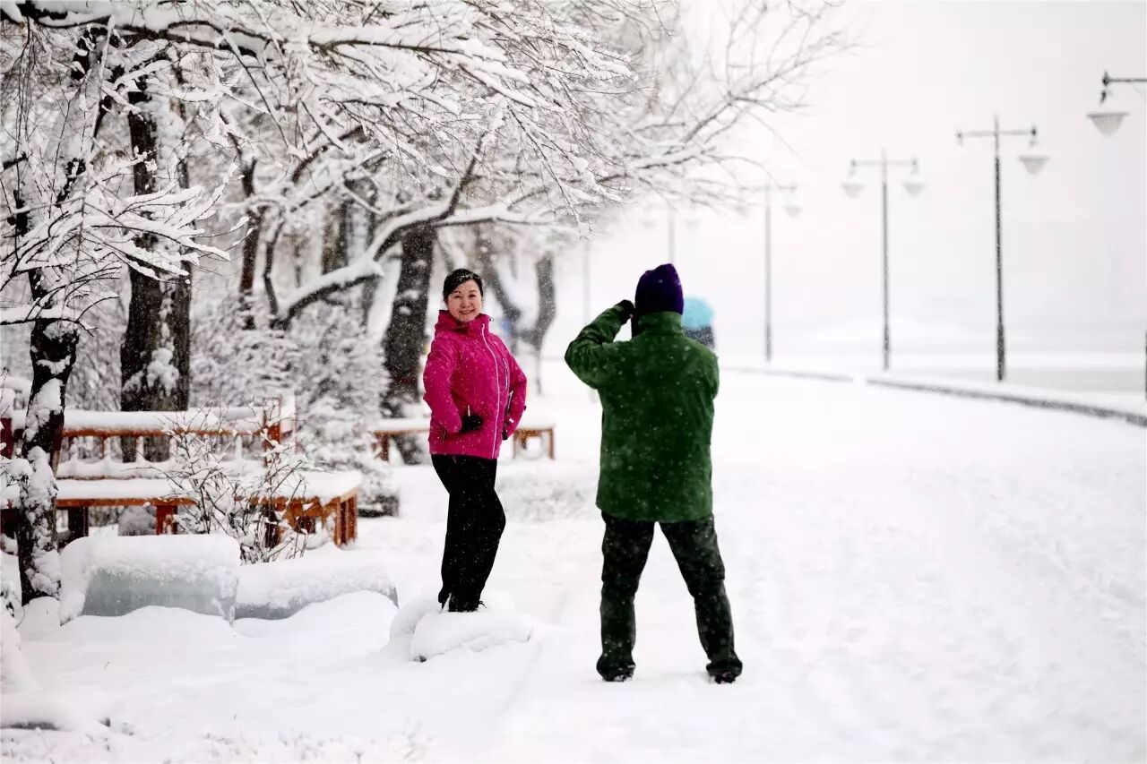 作品:拍张照片留住美 内容:2015年2月26日,延吉市普降瑞雪,市民纷纷走到户,拍摄美景。