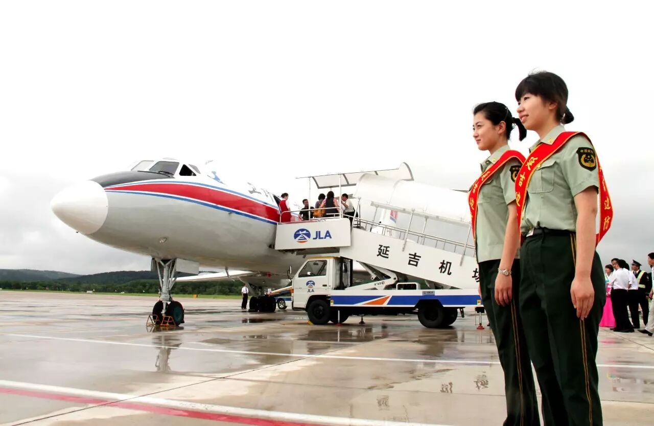 作品:直飞朝鲜平壤 内容:2012年7月12日,延吉市正式开通直飞朝鲜平壤的旅游包机。图为边检官兵护航。