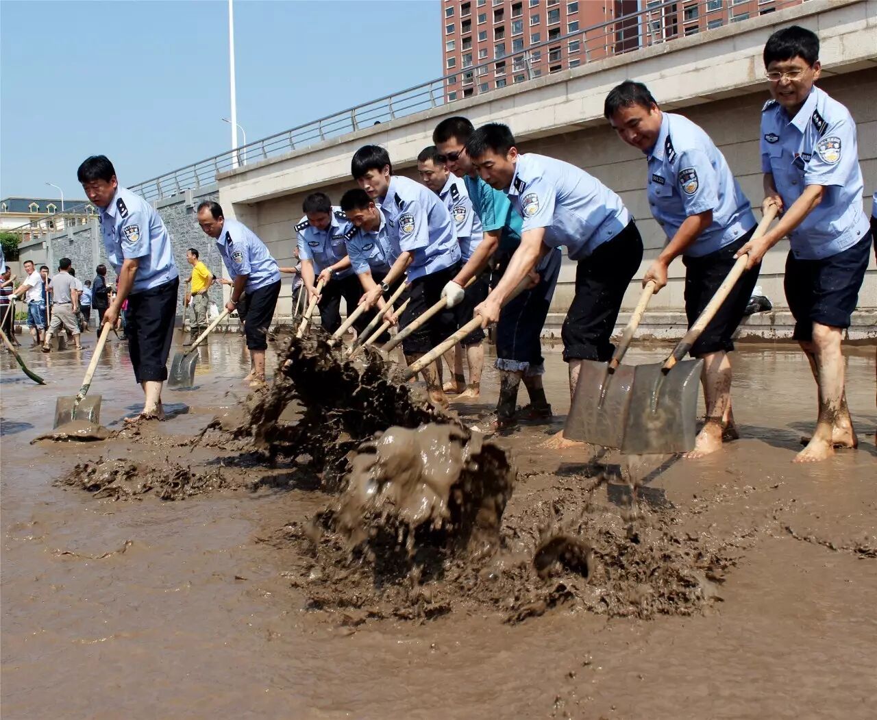作品:千人清淤 内容:2013年8月5日,吉林省延吉市遭遇洪灾,灾后大量淤泥留在学滨河广场,市政府动用千余名机关干部义务清淤。