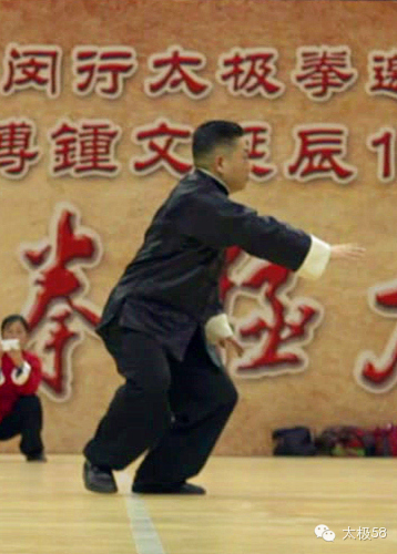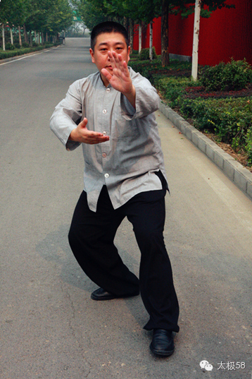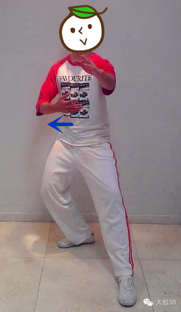 第二个步骤是重心后移,注意在这个过程中,右手并没有太多的动作。上图中的右手在腰未转动时,就过快后撤了。正确动作应如下图傅老师所示。