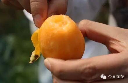 一、首先将枇杷和手清洗干净,然后用指甲沿着枇杷的纵轴轻轻刮下来,整个枇杷都刮一次,最后就很容易剥皮了。剥下来的皮很完整,直接一拉到底。如果觉得用指甲刮很不卫生,大家可以准备一根牙签,用水清洗一下然后用来刮。